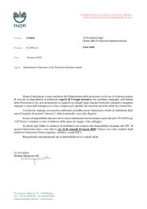 Qualora disponibili, si chiede l’invio dei dati richiesti (nome e cognome, cellulare, e-mail/PEC) all’indirizzo mail segreteria@opibelluno.it entro le ore 11.30 di venerdì 13 marzo 2020 in modo da poter dare riscontro alla richiesta della FNOPI nei tempi indicati.